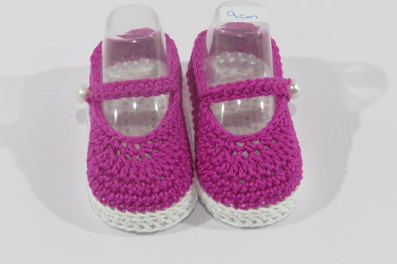 Crochet baby shoes made with Natural Cotton. Fits 9cm foot.